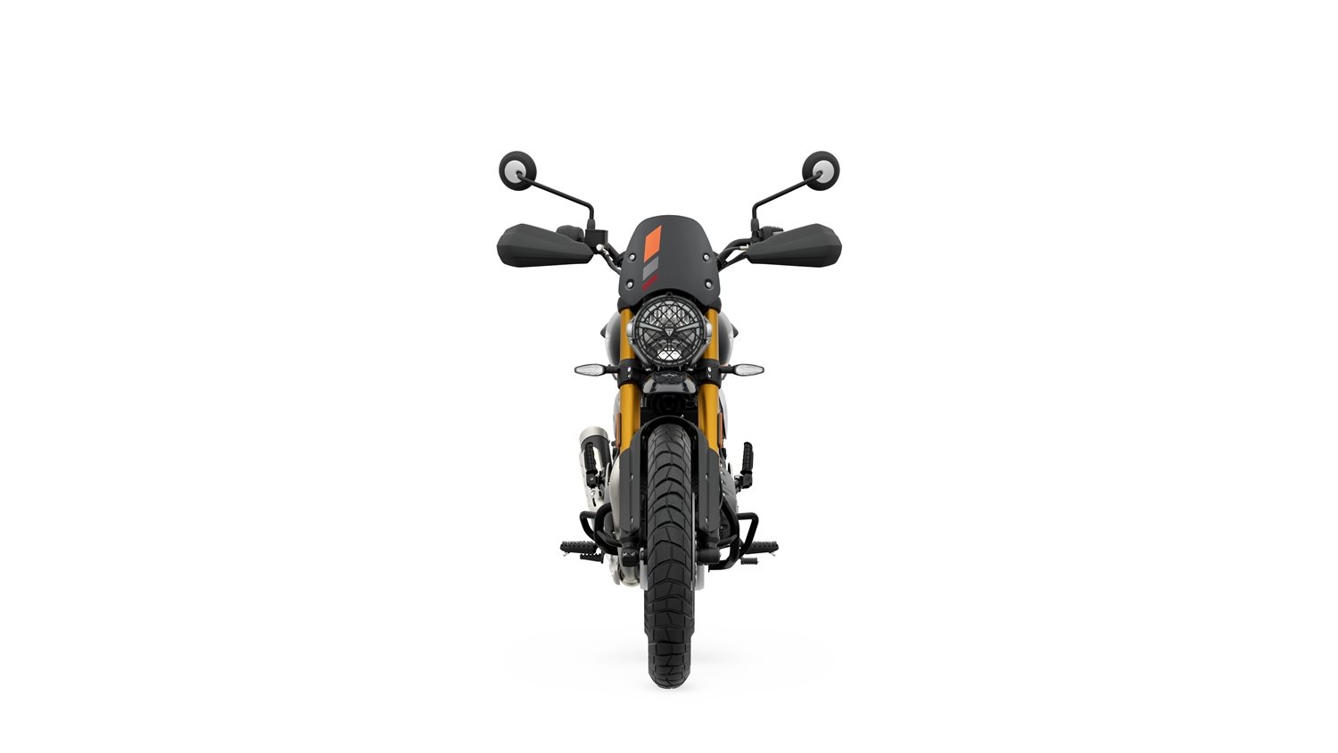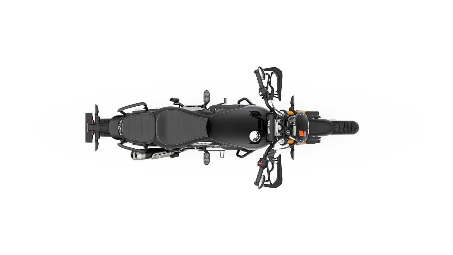 Die 19-Zoll-Vorder- und 17-Zoll-Hinterräder verbessern nicht nur die Geländetauglichkeit, sondern tragen auch zur authentischen Scrambler-Optik und zur souveränen Straßenperformance des Motorrads bei. Das neue hoch montierte Schutzblech und die Windschutzscheibe sind farblich abgestimmt und bieten dem Fahrer zusammen mit den Handprotektoren Schutz bei schwierigen Bedingungen. Der robuste Aluminium-Motorschutz und die Motorschutzbügel bewahren wichtige Komponenten vor Steinschlag.